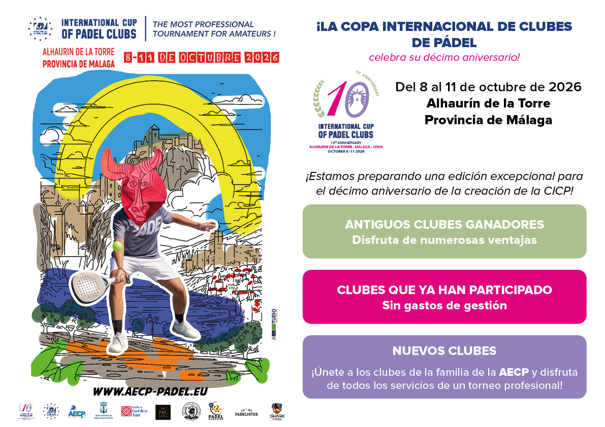 ¡Club, empresa o grupo de amigos, formen su selección de 4 jugadores y 2 jugadoras y únanse a la aventura de la Copa Internacional de Clubes de Pádel! ¡Solo habrá 24 selecciones! MÁS INFORMACIÓN FollowFollow